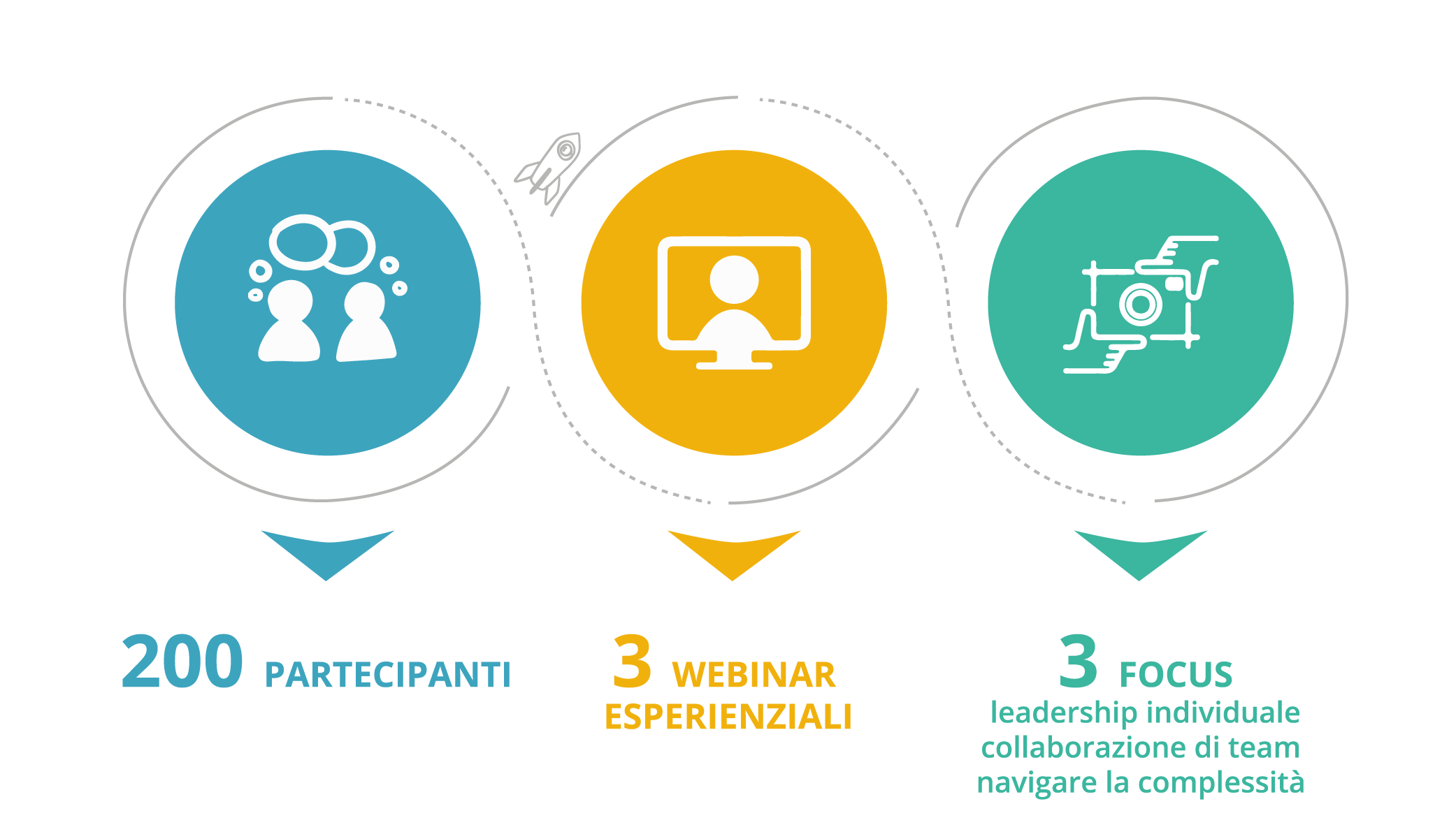 - 3 focus: leadership individuale, collaborazione di team, navigare la complessità